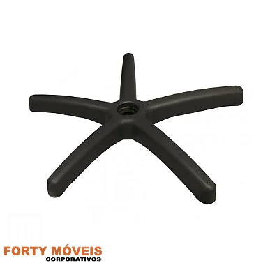 A base estrela para cadeiras giratórias é uma ótima opção para manutenção de cadeiras. Indicada para modelos em geral, sua praticidade está na fácil instalação e na qualidade garantida. Ela é confeccionada em tubo de aço reforçado e revestida com capa em peça única de polipropileno de alta resistência na cor preta. Permite junção de rodízios ou sapatas plásticas deslizantes por meio de ponteiras com encaixe de 11mm.